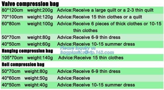 China Vacuum Hang Compressed Bags For Down Jacket: China Compressed Saving Suitcase Space Higher Capacity Tote: Vacuum Storage Roll-up Bag
