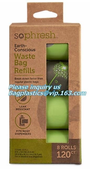 Package includes: 120pcs dog poop bags , 8 rolls, 15 bags per roll.