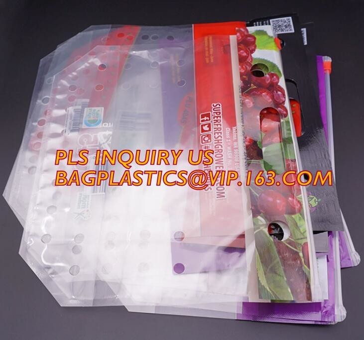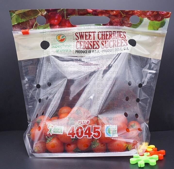 | Fruits Cherries Special Vent Holes Packaging Poly Bag With Zip Lock: | Fruit Cherry Grape Bag | Fruit Packaging Bag For Grape Cherry Fruit: | Vegetable Packing Protection Bag |