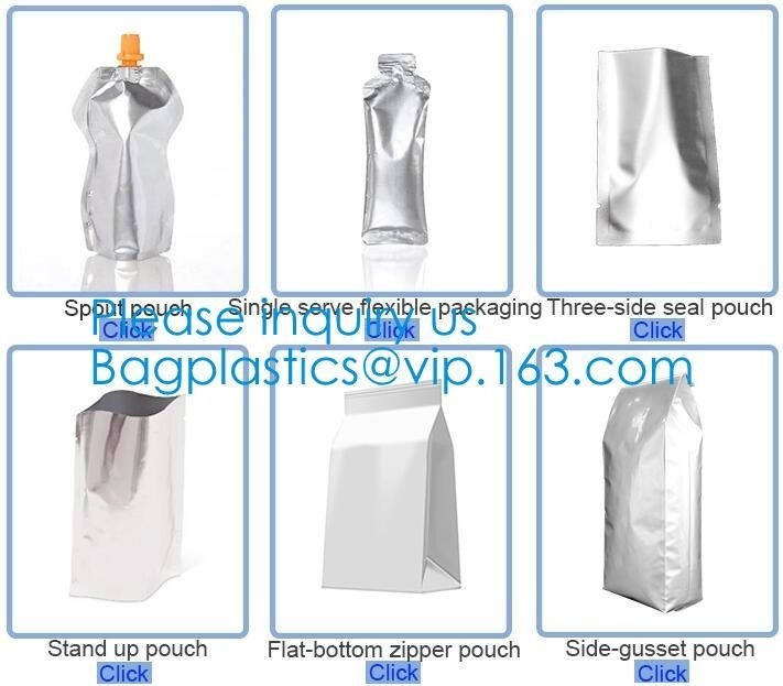| Feature | 1. Excellent moisture barrier, high oxygen and light barrier, good low temperature resistance. 2. Strong sealing strength; bonding strength and excellent compression strength. 3. Lower cost than traditional package, like bottles, tins, cans, jars etc. 4. Custom size,material,material thickness,volume,printed,etc | ||