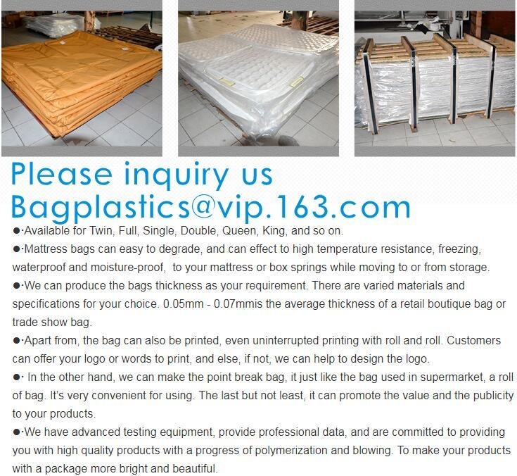 l Mattress bags can easy to degrade, and can effect to high temperature resistance, freezing, waterproof and moisture-proof, to your mattress or box springs while moving to or from storage.