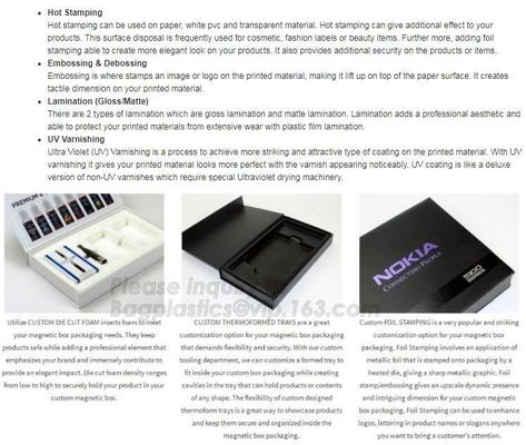 Printing Handling: Embossing, Glossy Lamination, Matt Lamination, Stamping, UV Coating, Varnishing, Gold sliver foil stamping, Spot UV, Embossed, debossed