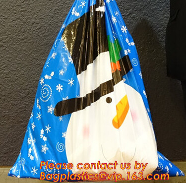 PE Plastic drawstring Gift Bags With cartoon Logo, drawstring christmas plastic giant santa sack for gift 21